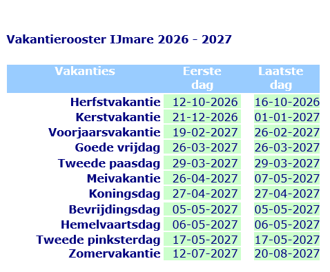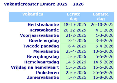 Op deze pagina vindt u de schoolvakanties 2025-26 en 2026-27.
